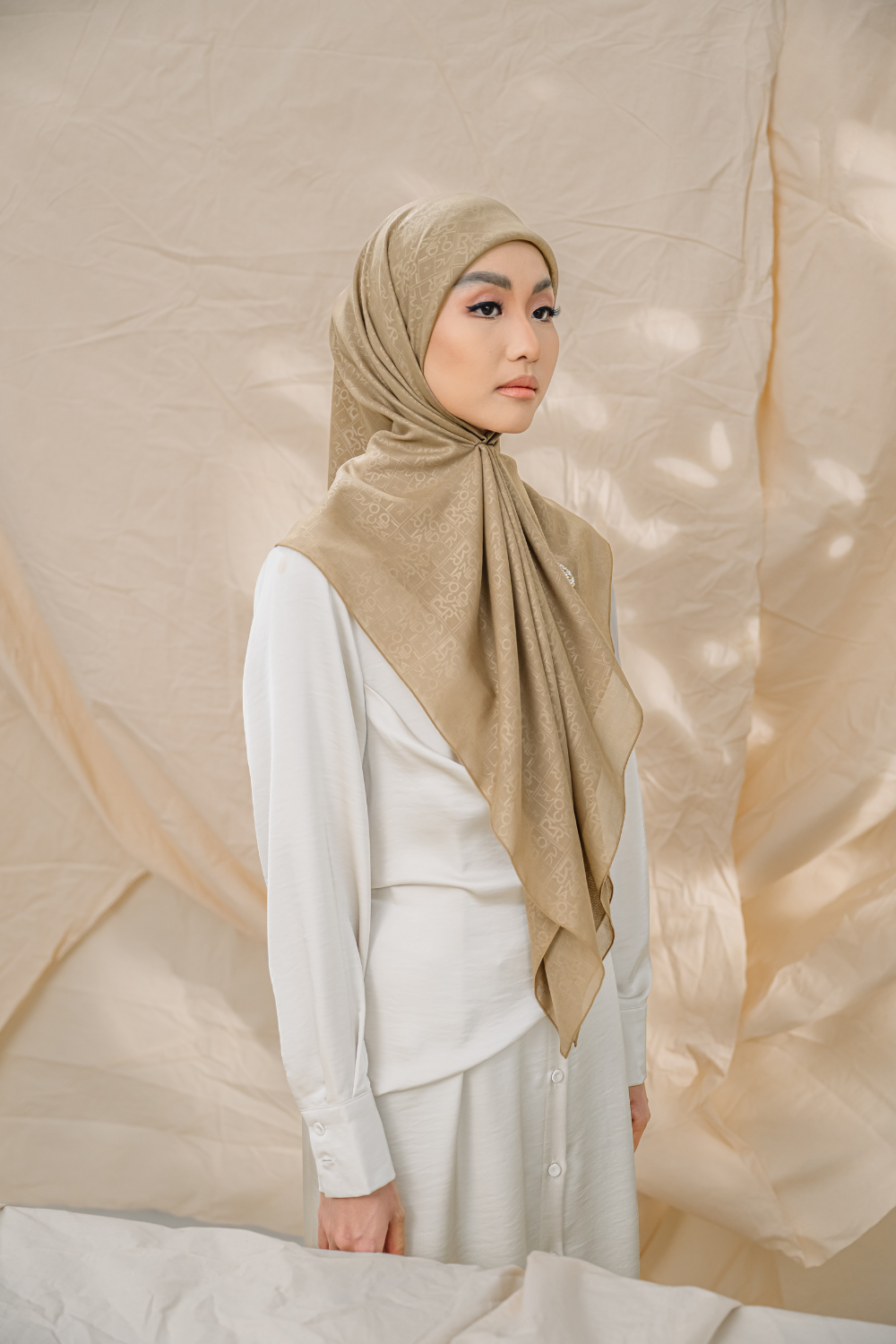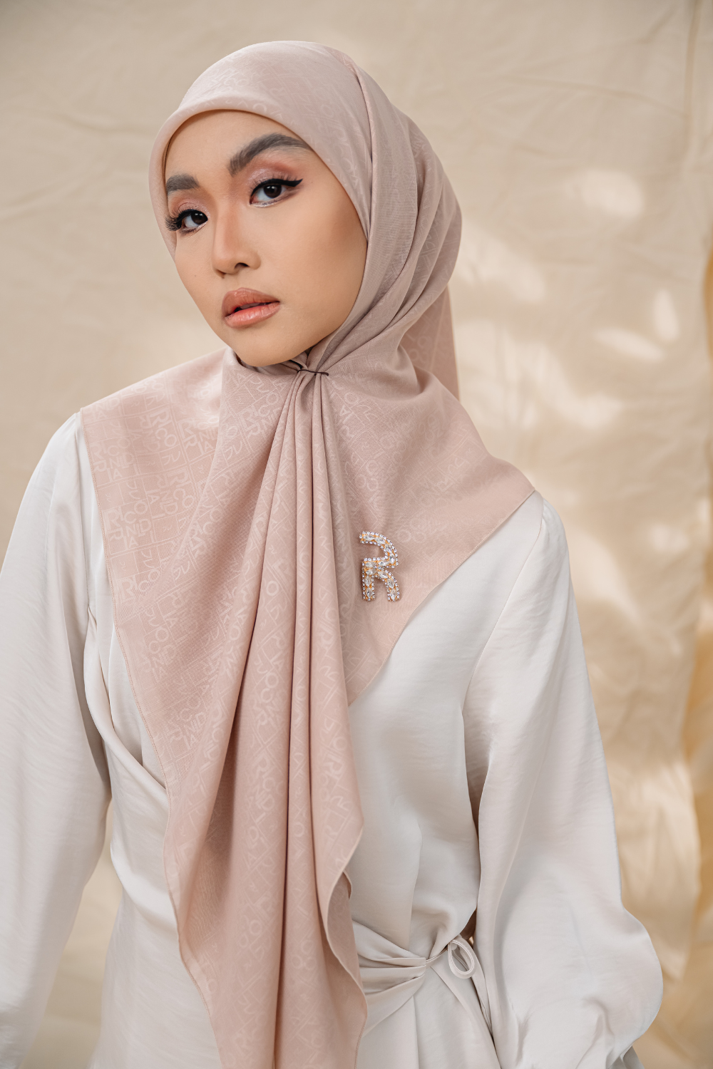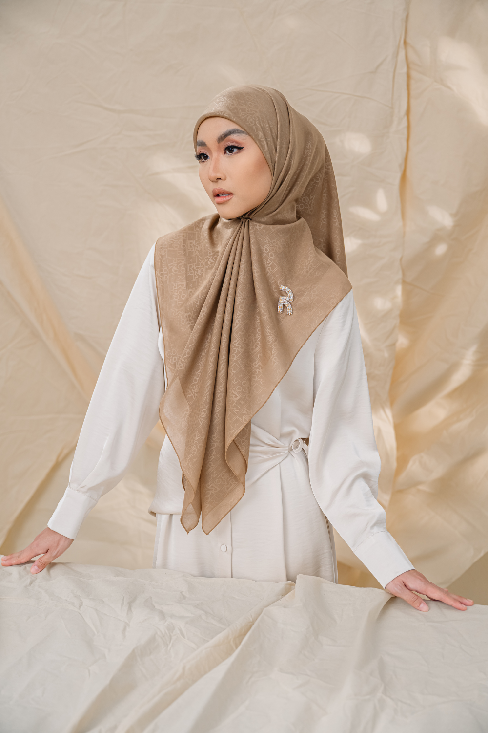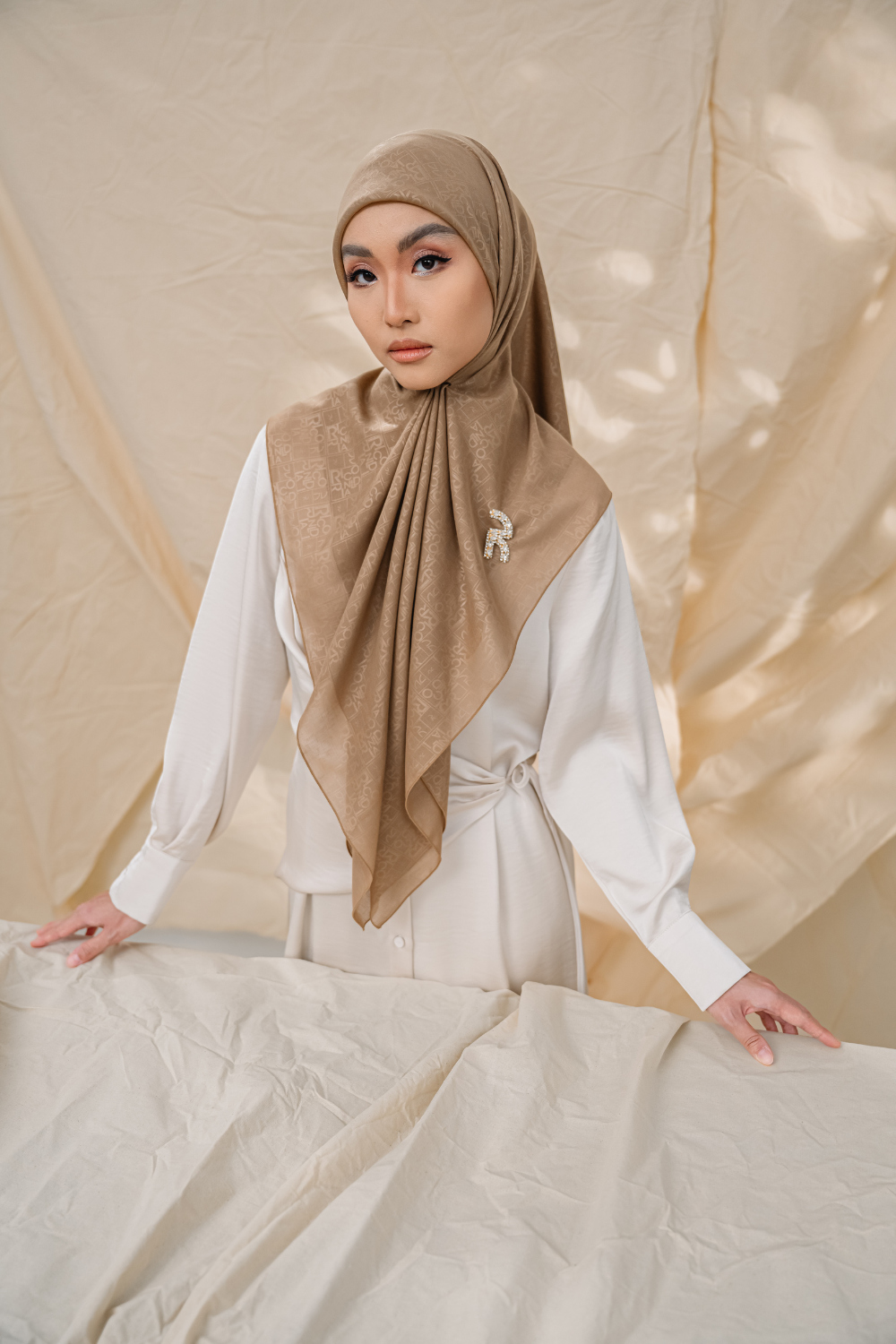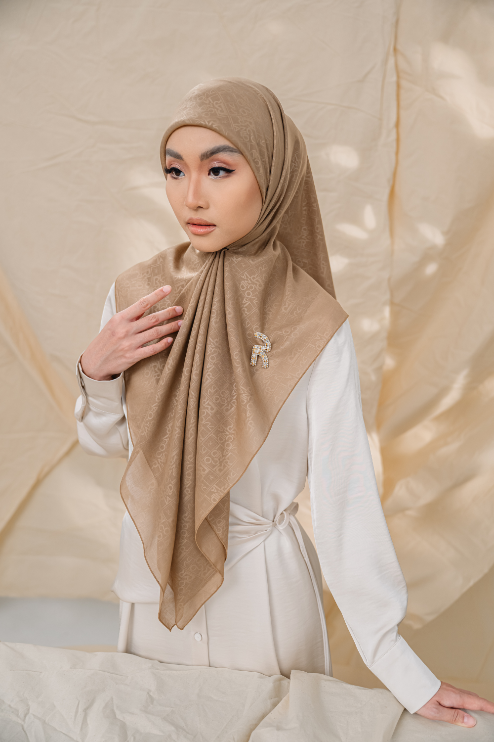 Rivora Embossed Shawl in Almond