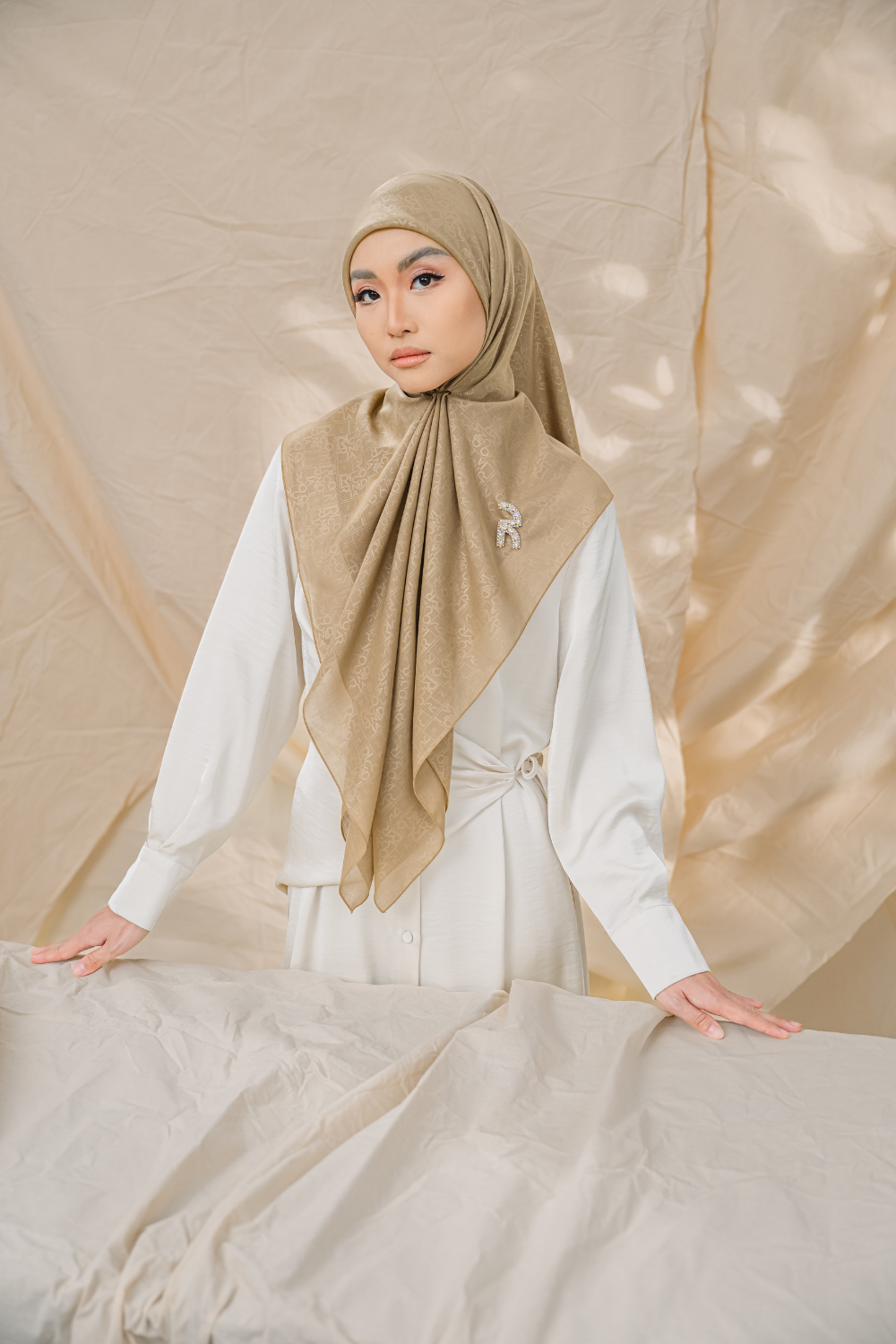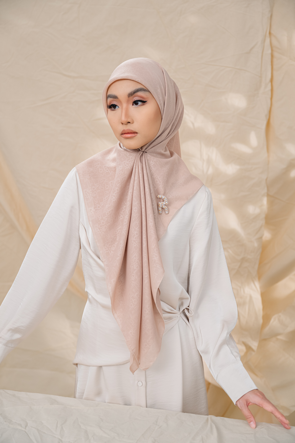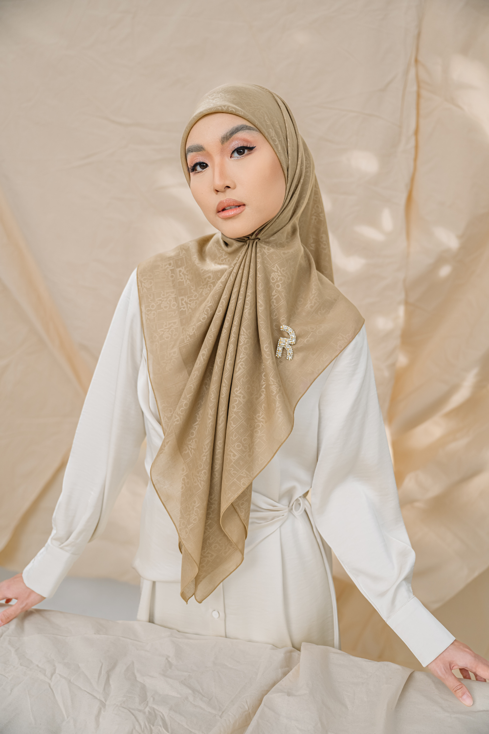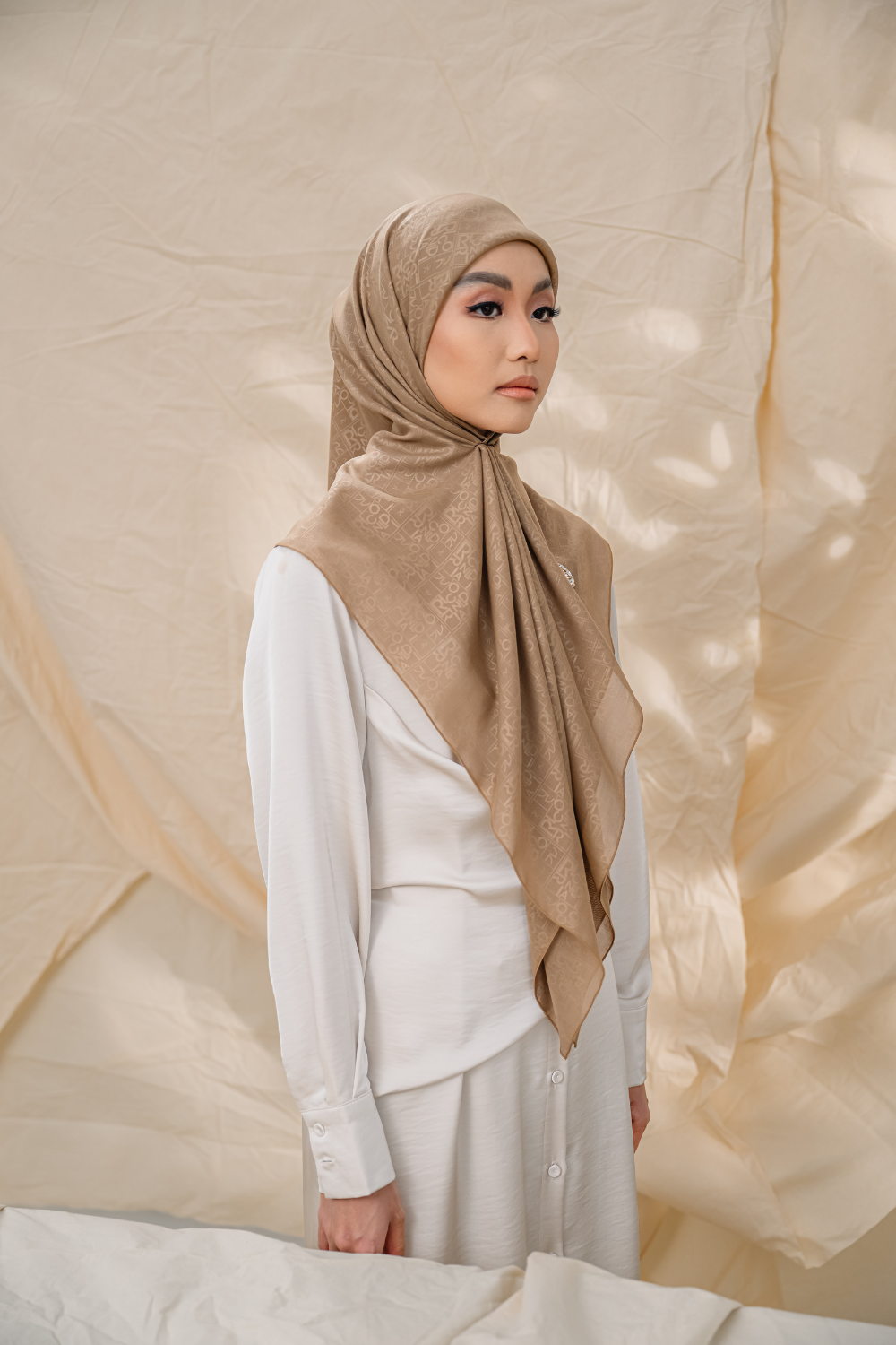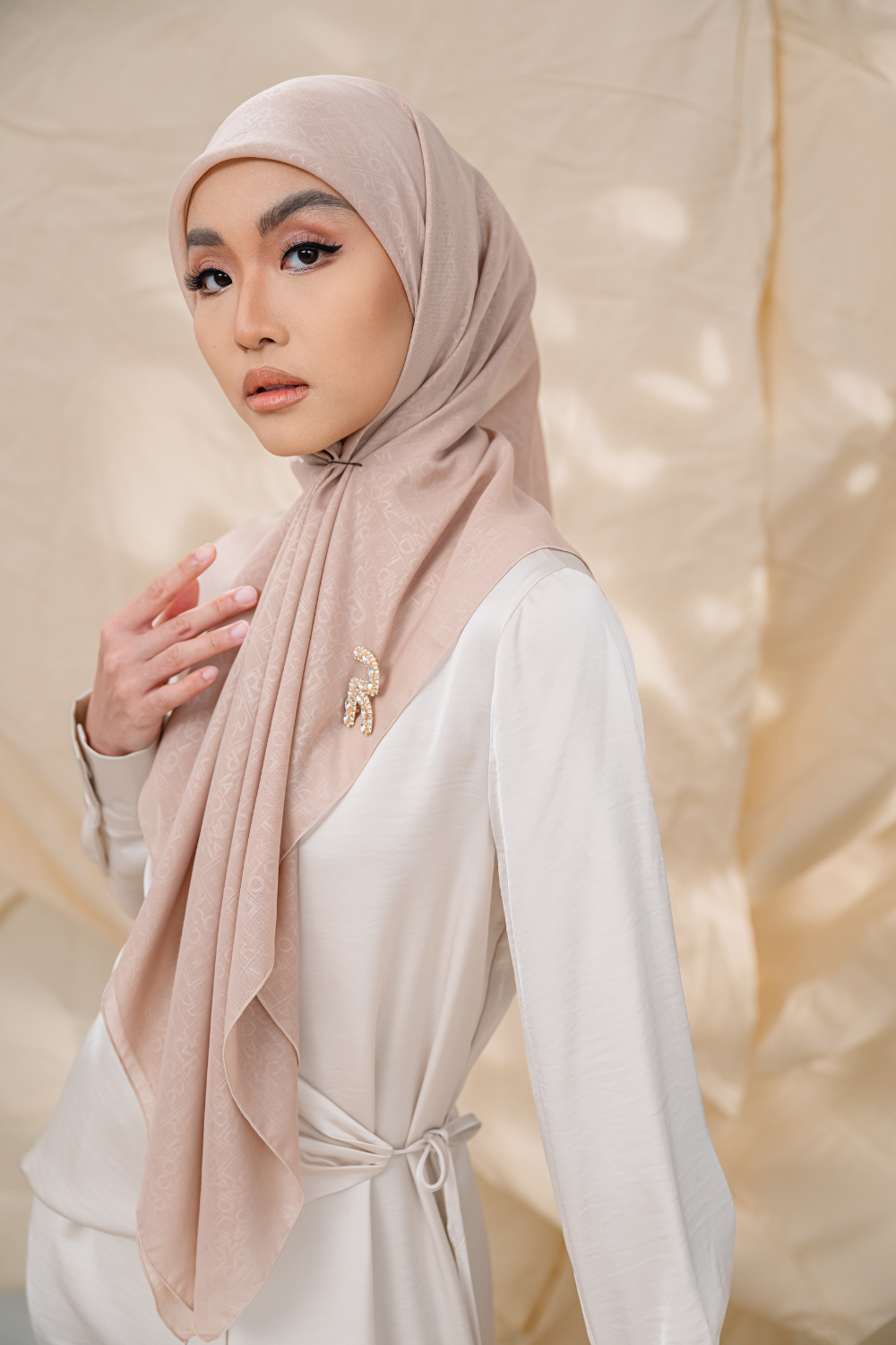 Rivora Embossed Shawl in Almond