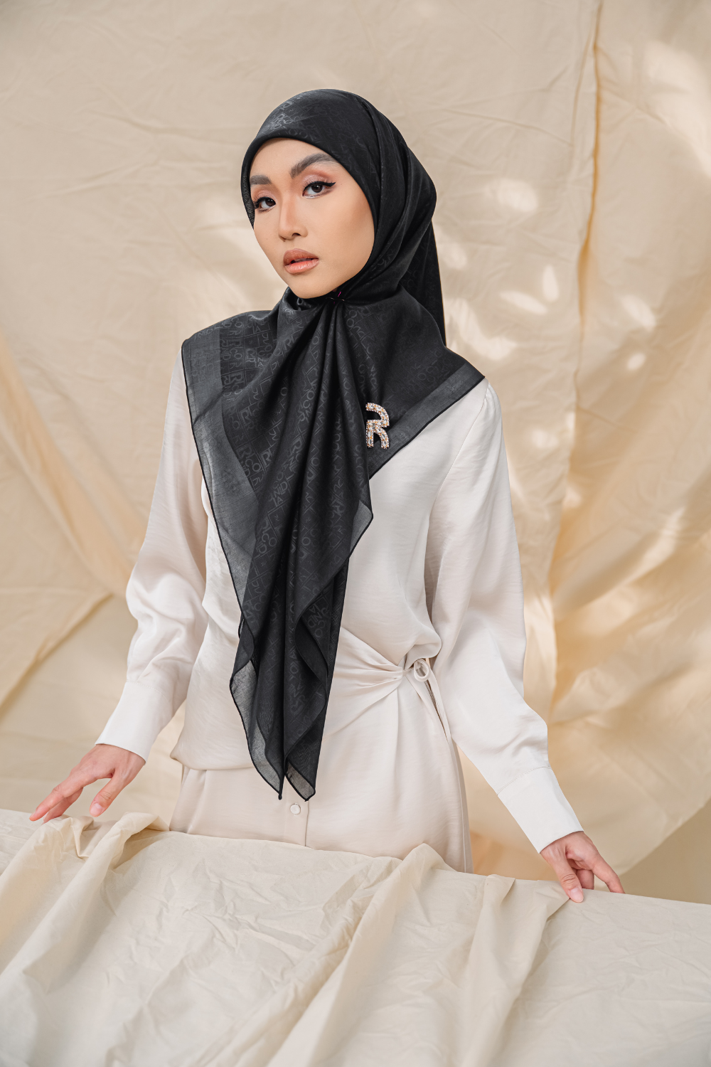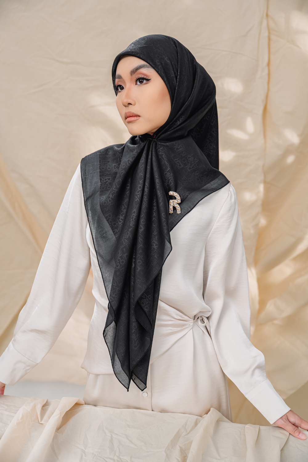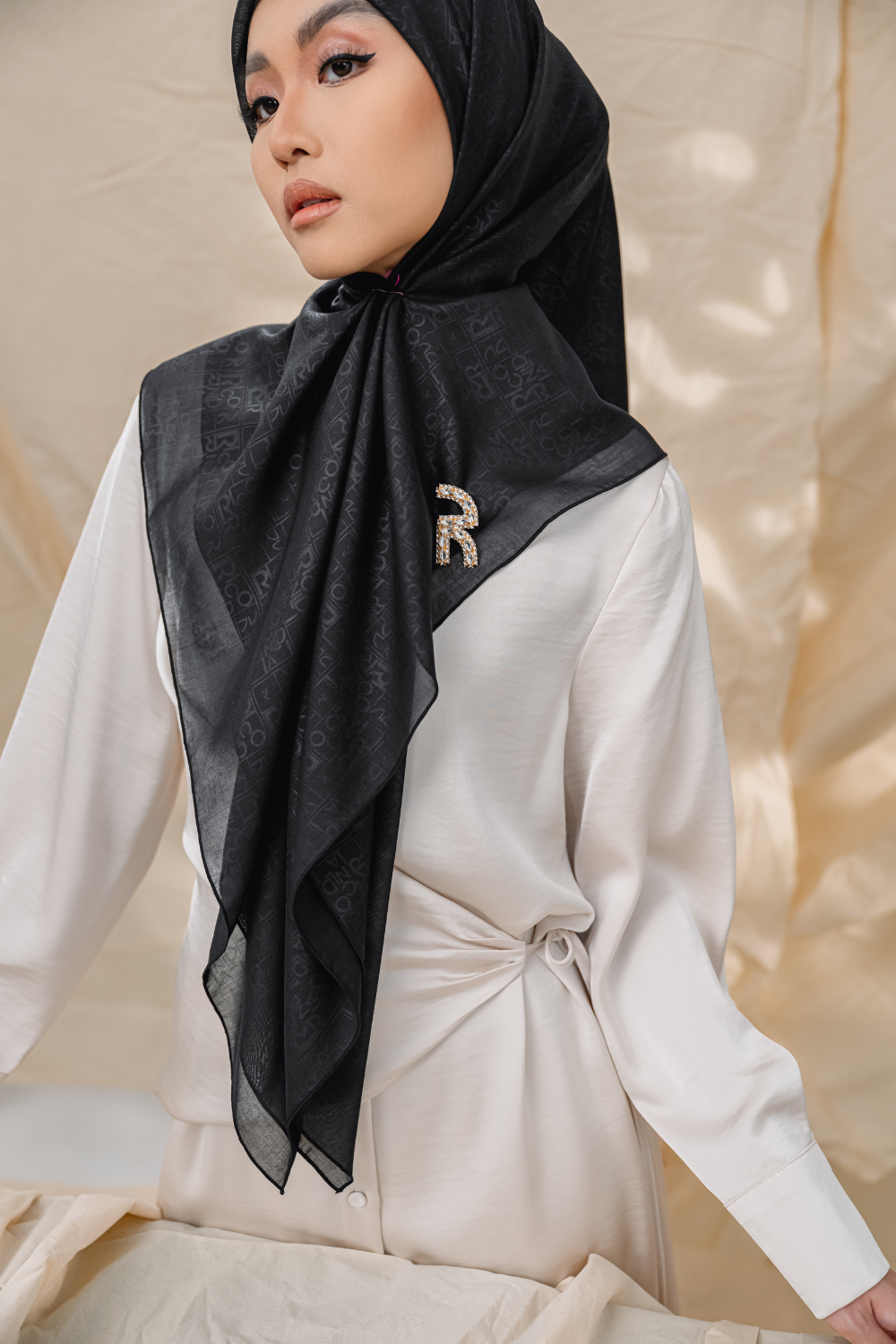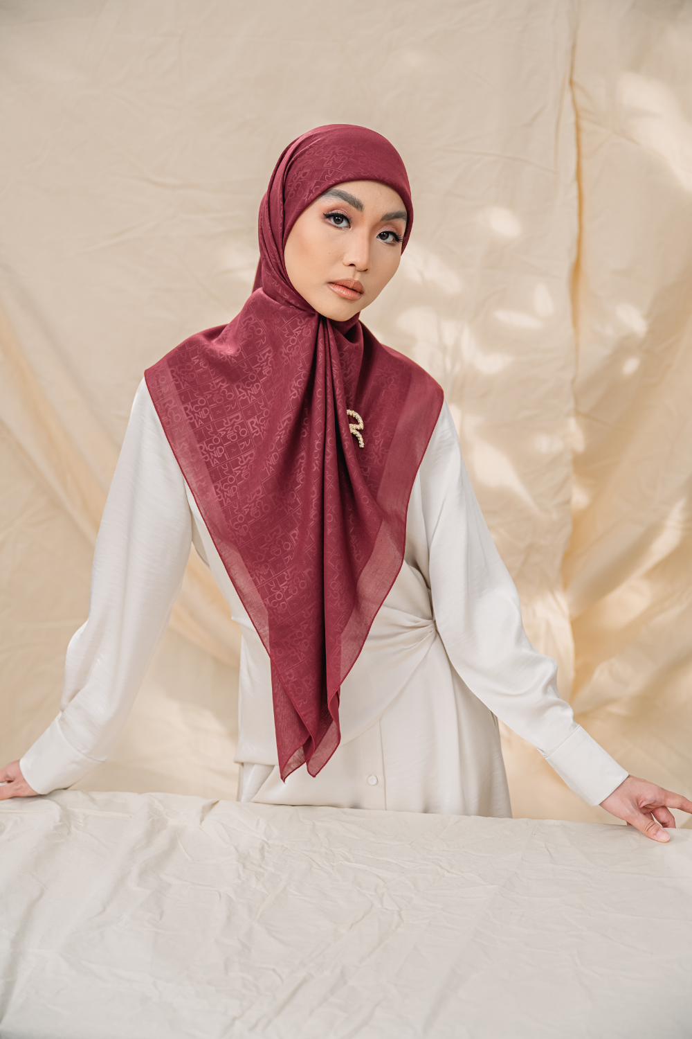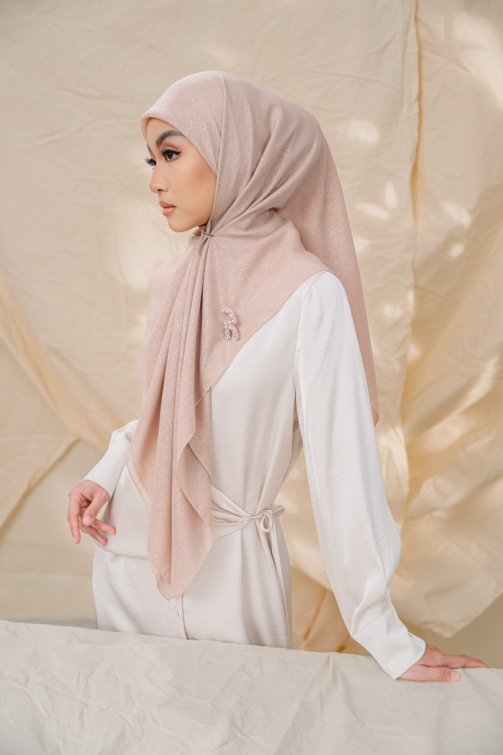 Rivora Embossed Shawl in Almond