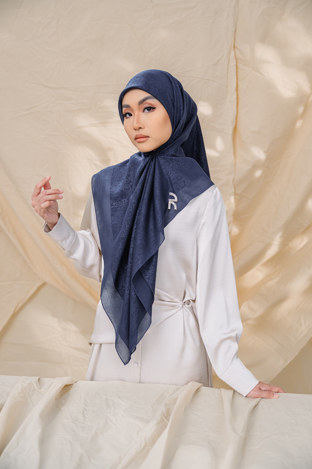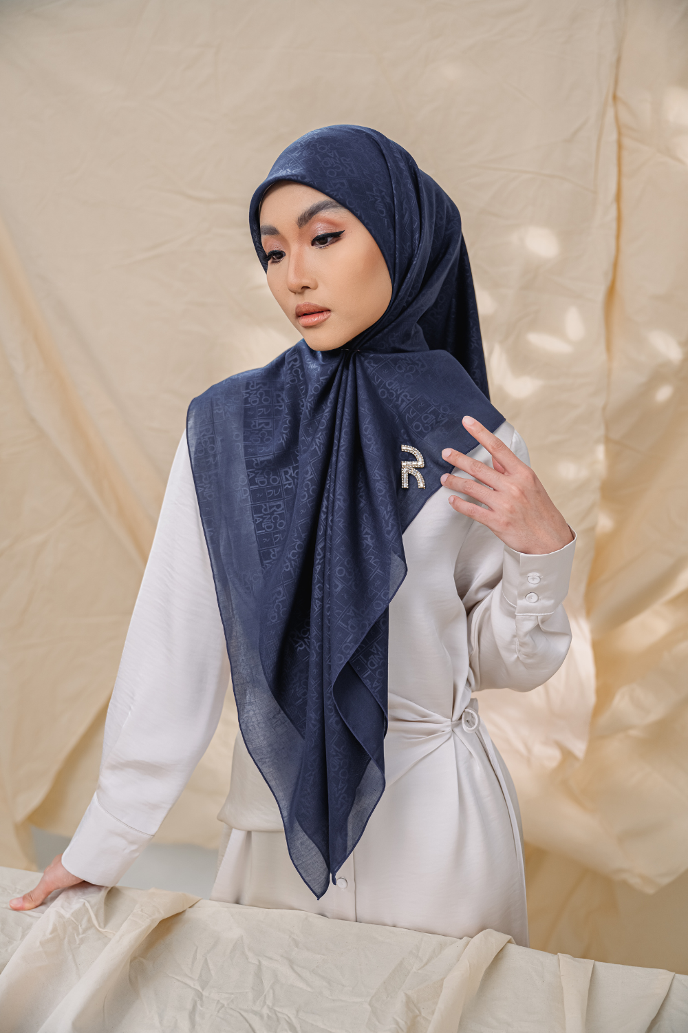 Rivora Embossed Square in Navy Blue