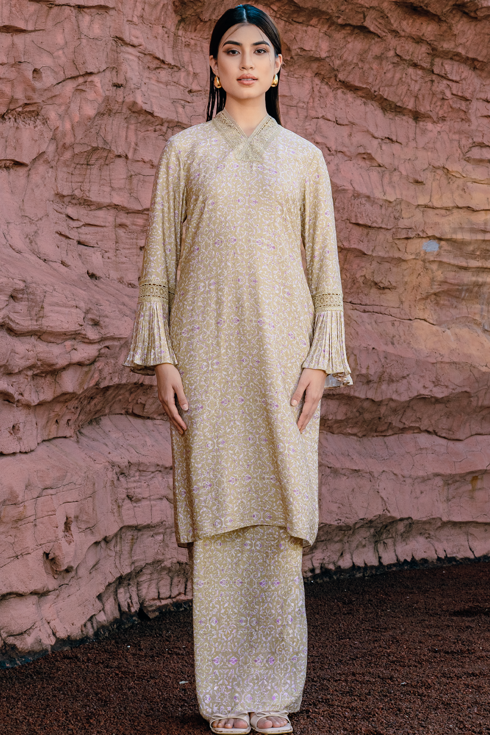 Aminah Long Kurung Summeraya 2026 in Olive