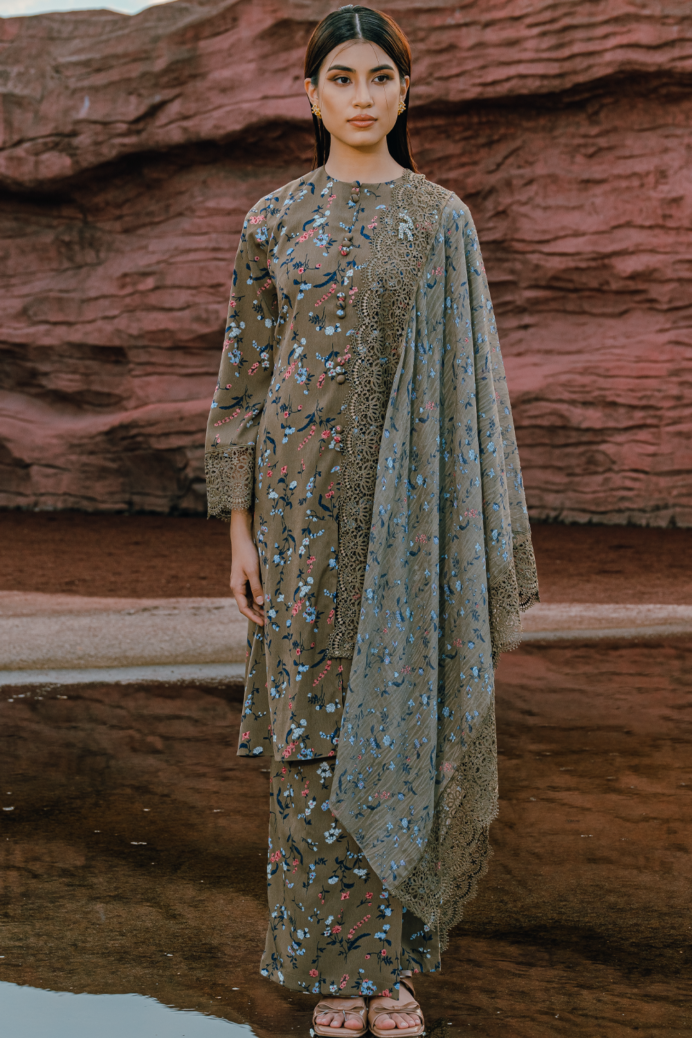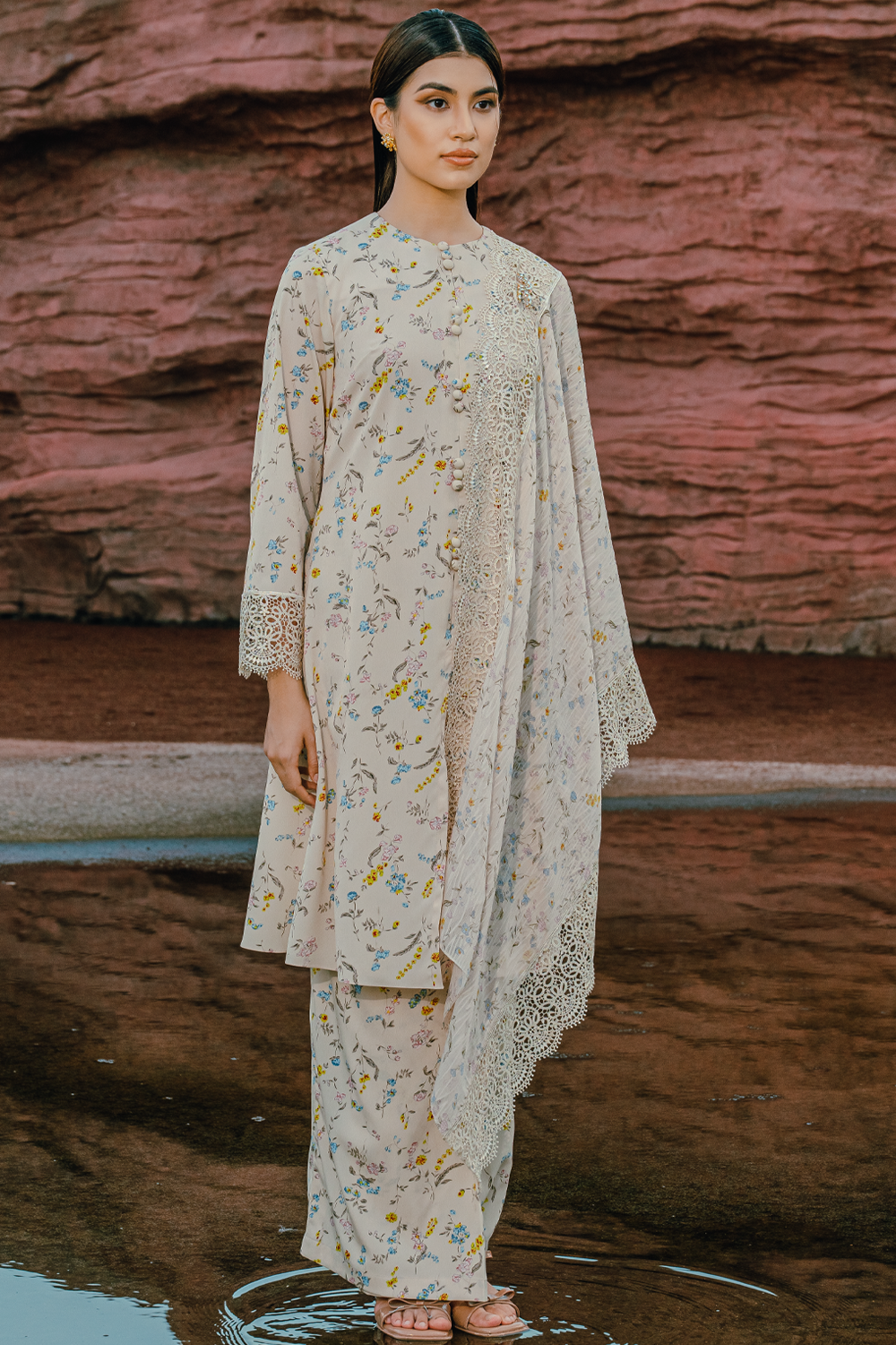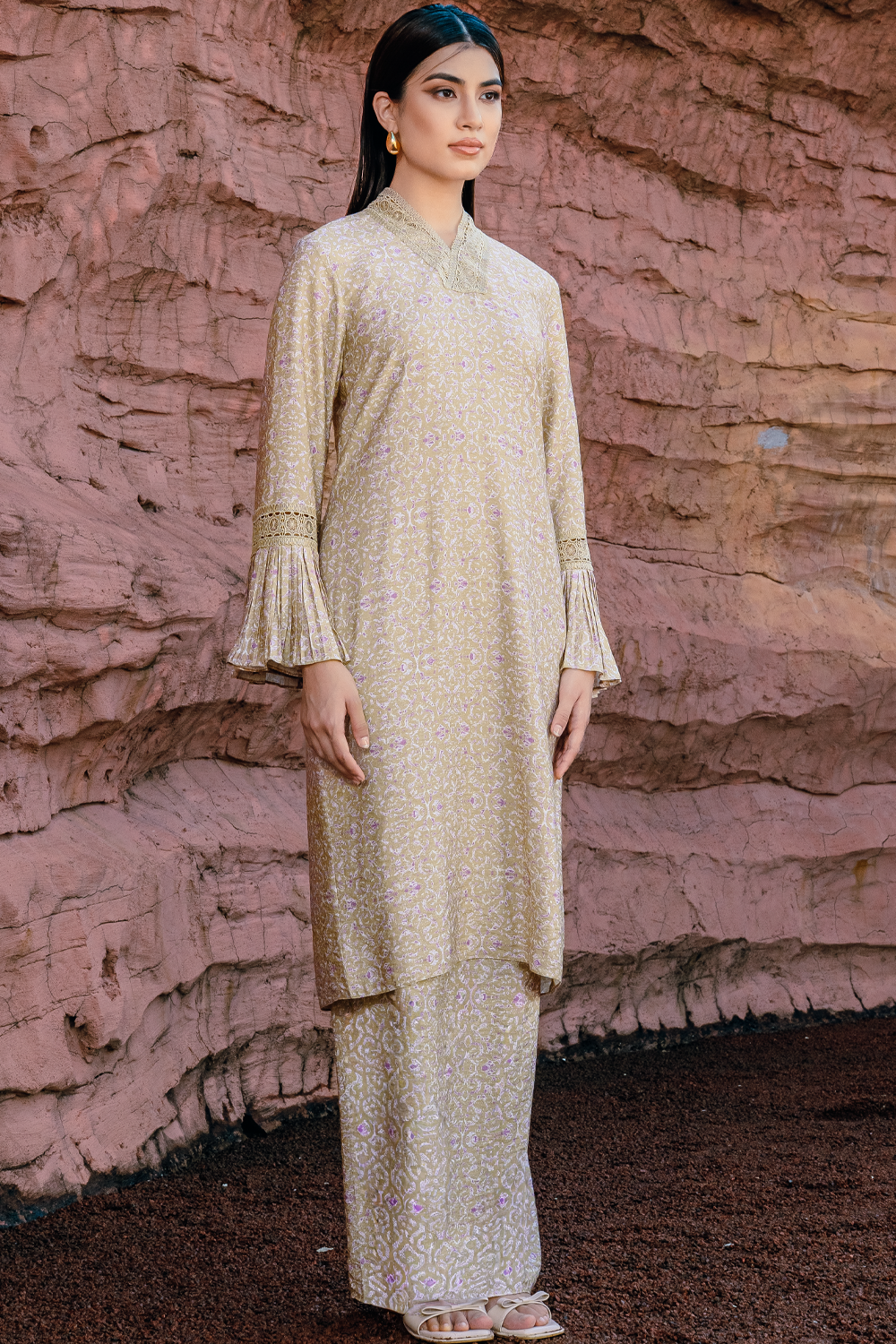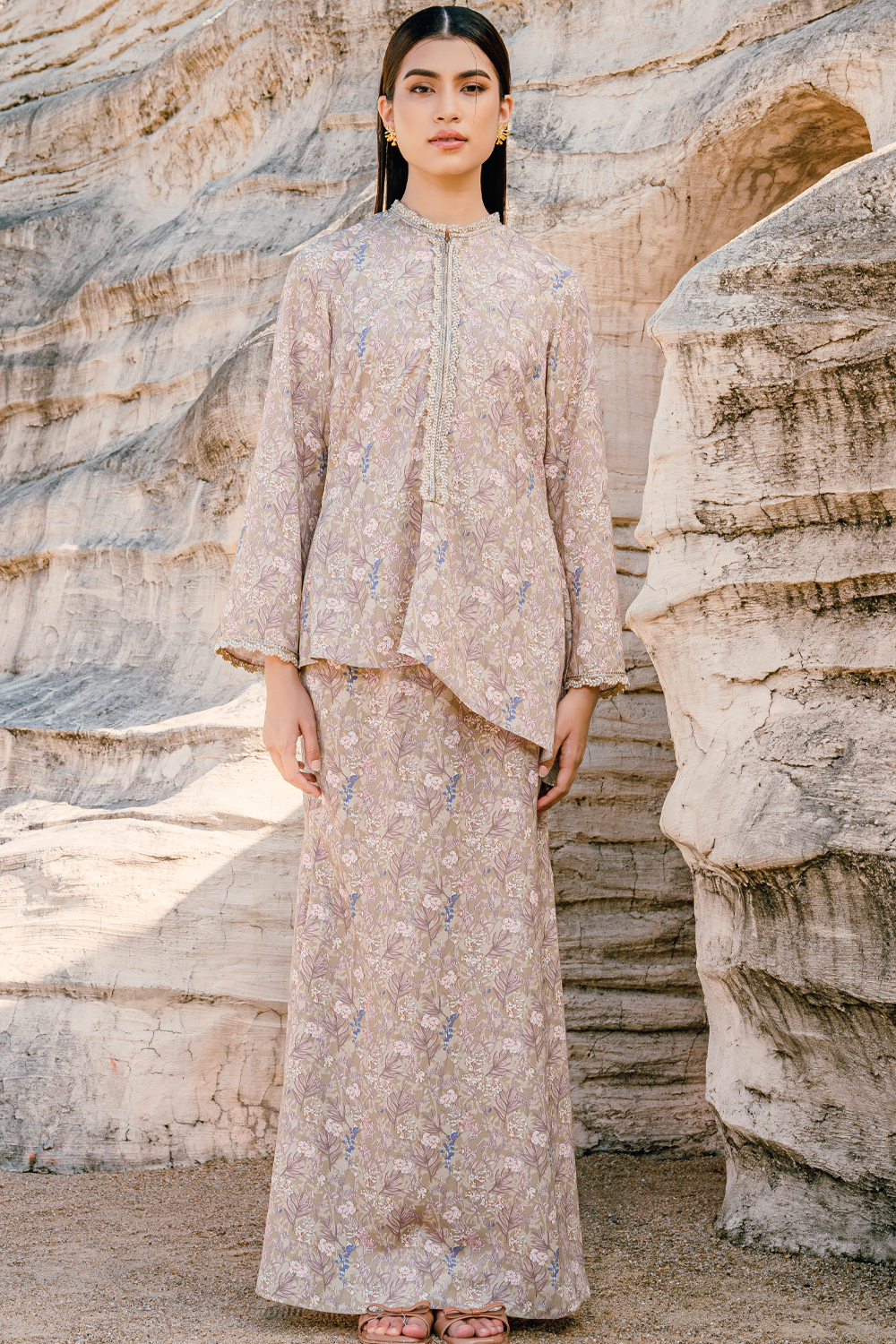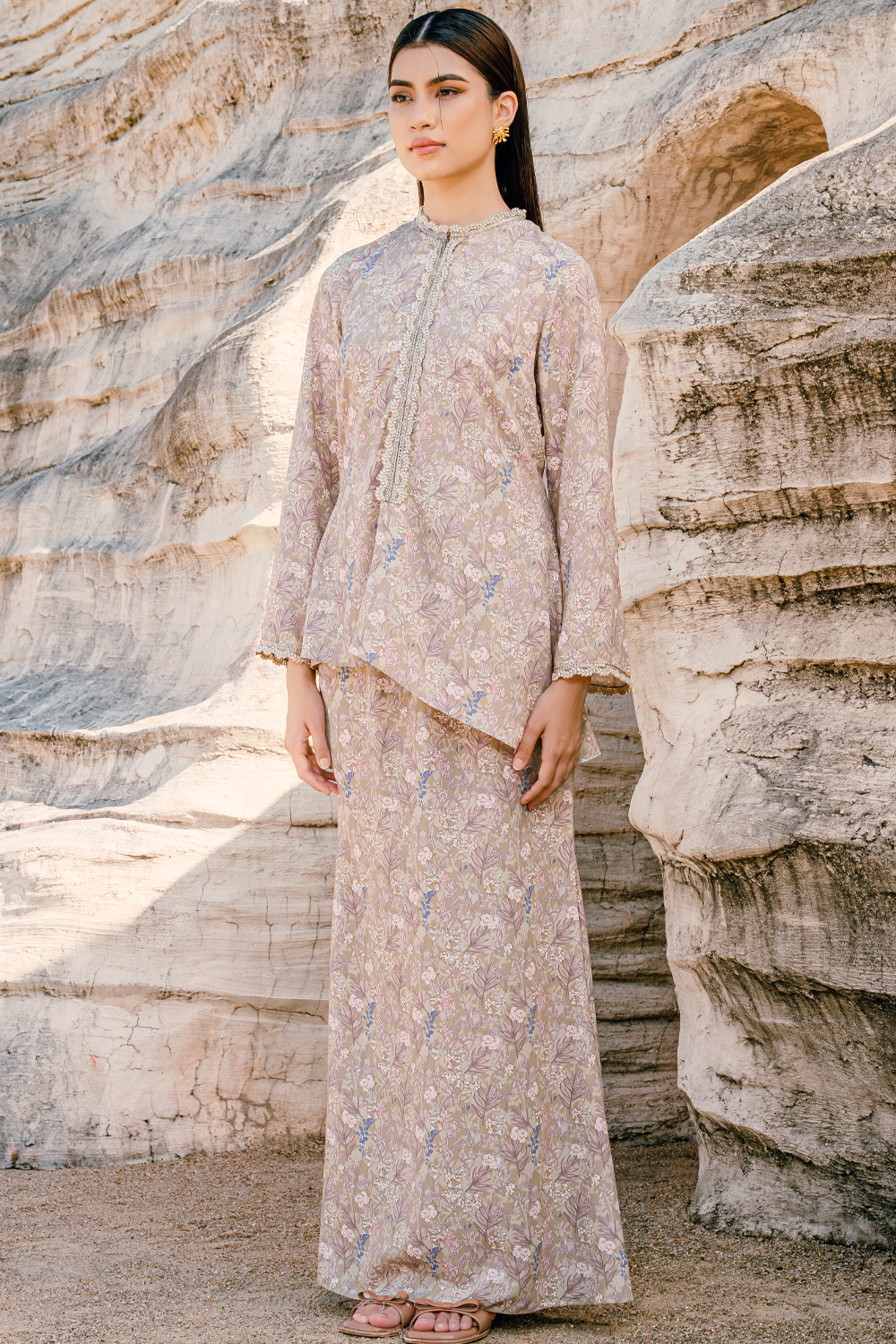 Aminah Long Kurung Summeraya 2026 in Beige
