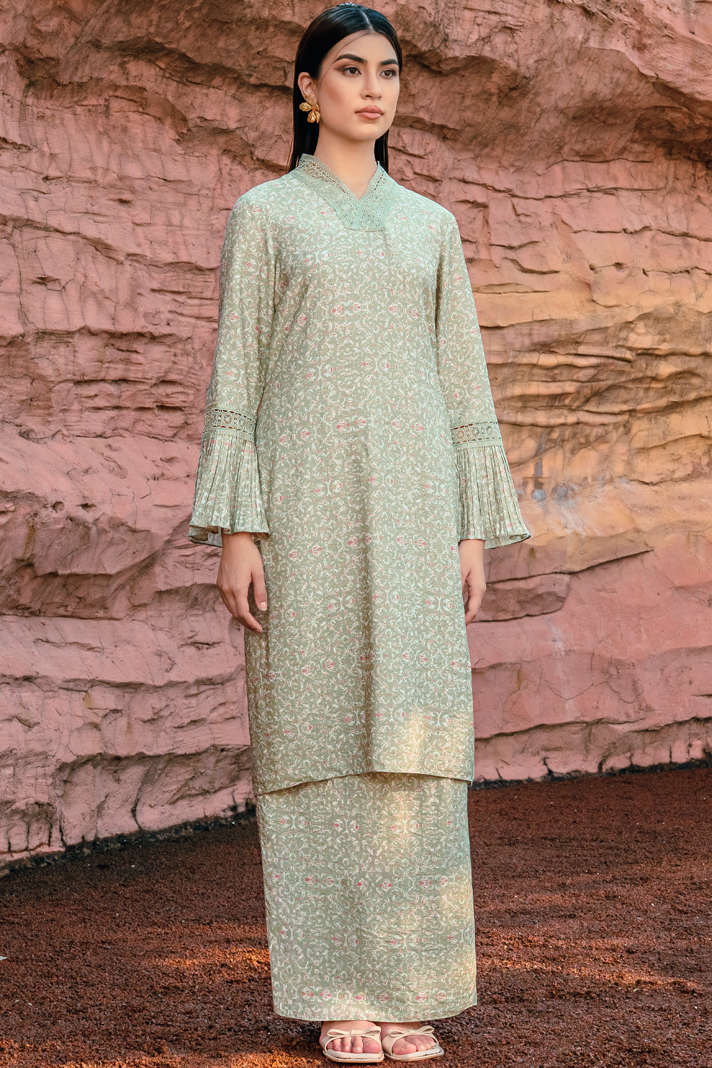 Salwa Long Kurung Summeraya 2026 in Sage Green