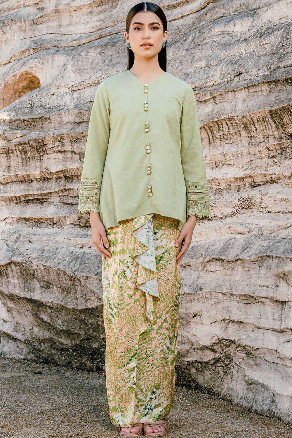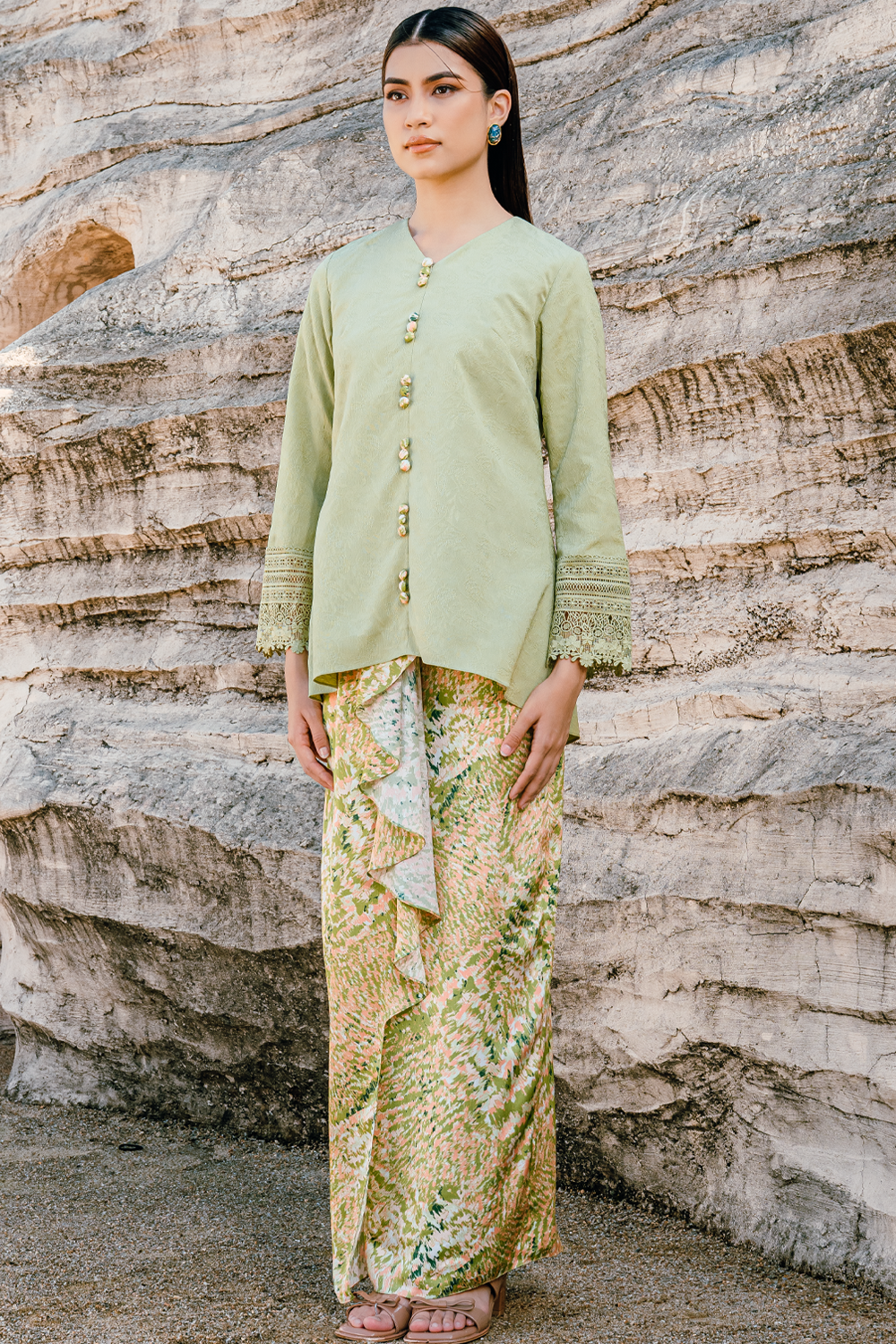 Nelisa Modern Kurung Summeraya 2026 in Olive Green
