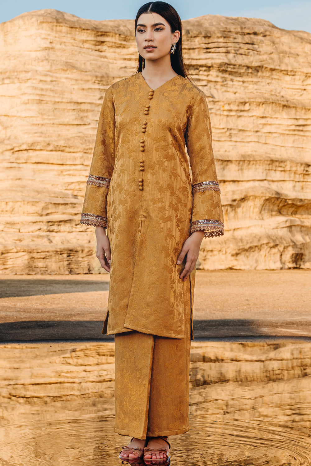 Salwa Long Kurung Summeraya 2026 in Mustard Gold
