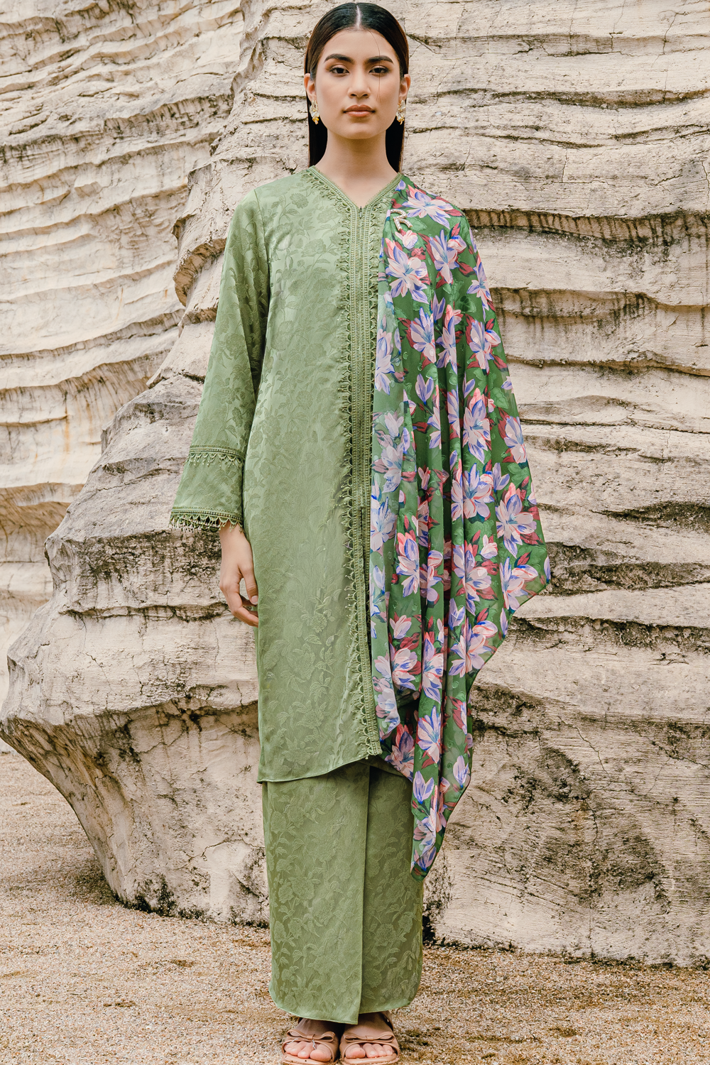 Amalis Long Kurung Summeraya 2026 in Moss Green