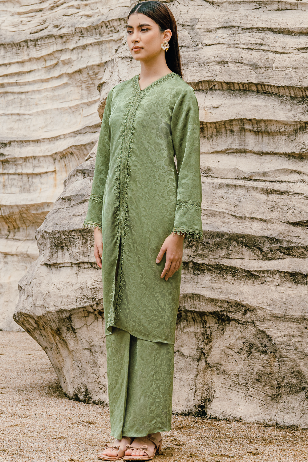 Nelisa Modern Kurung Summeraya 2026 in Olive Green